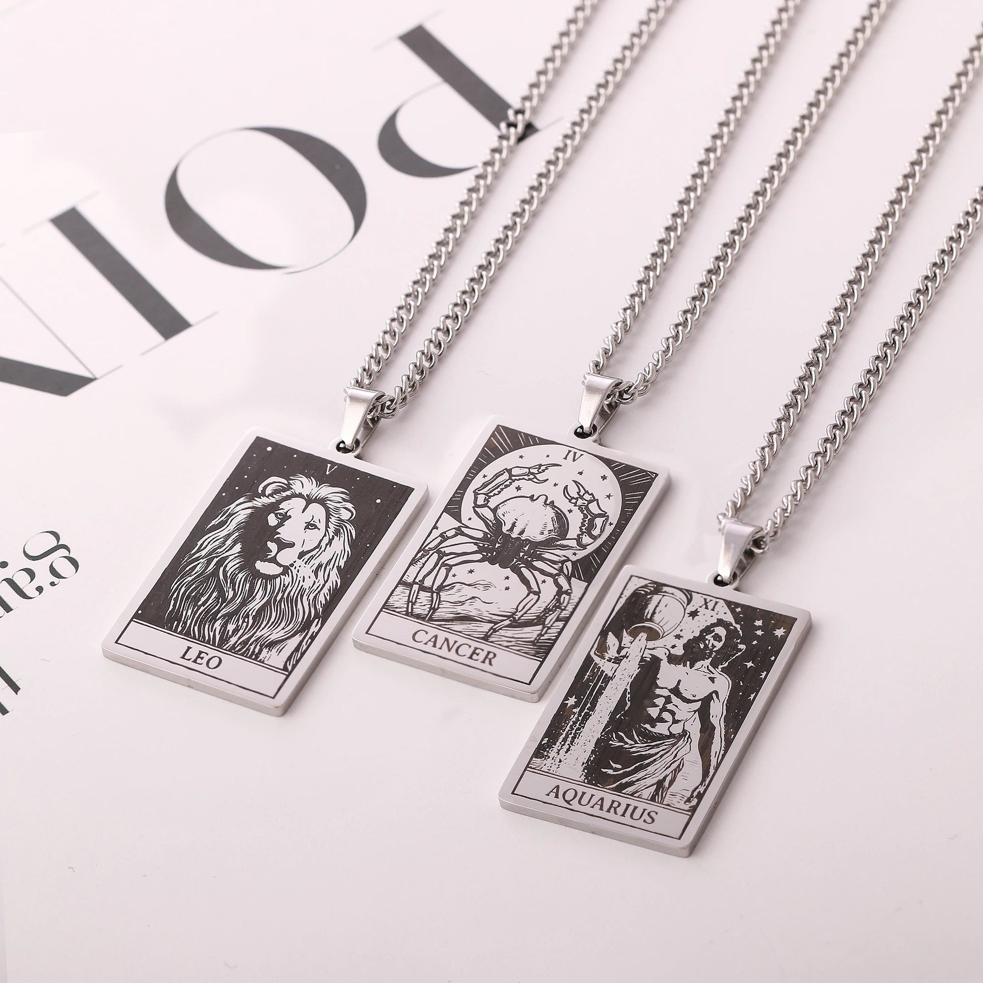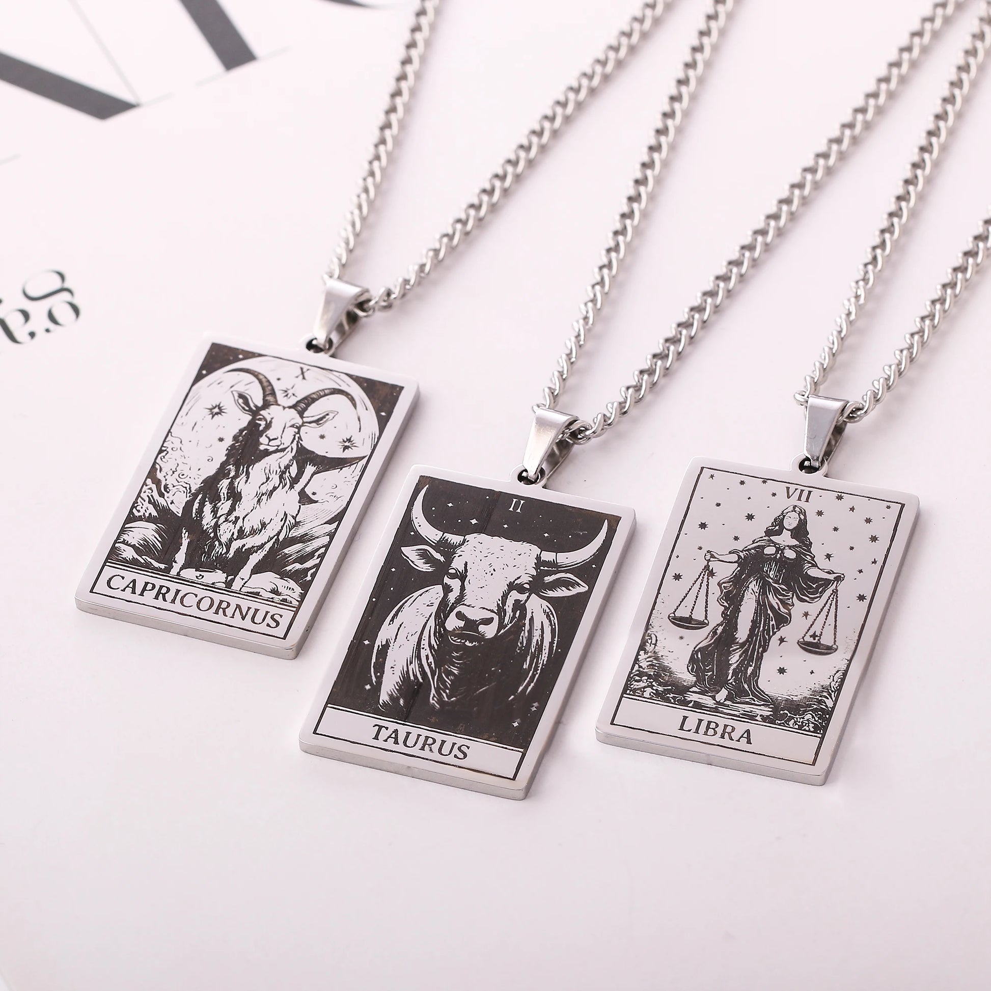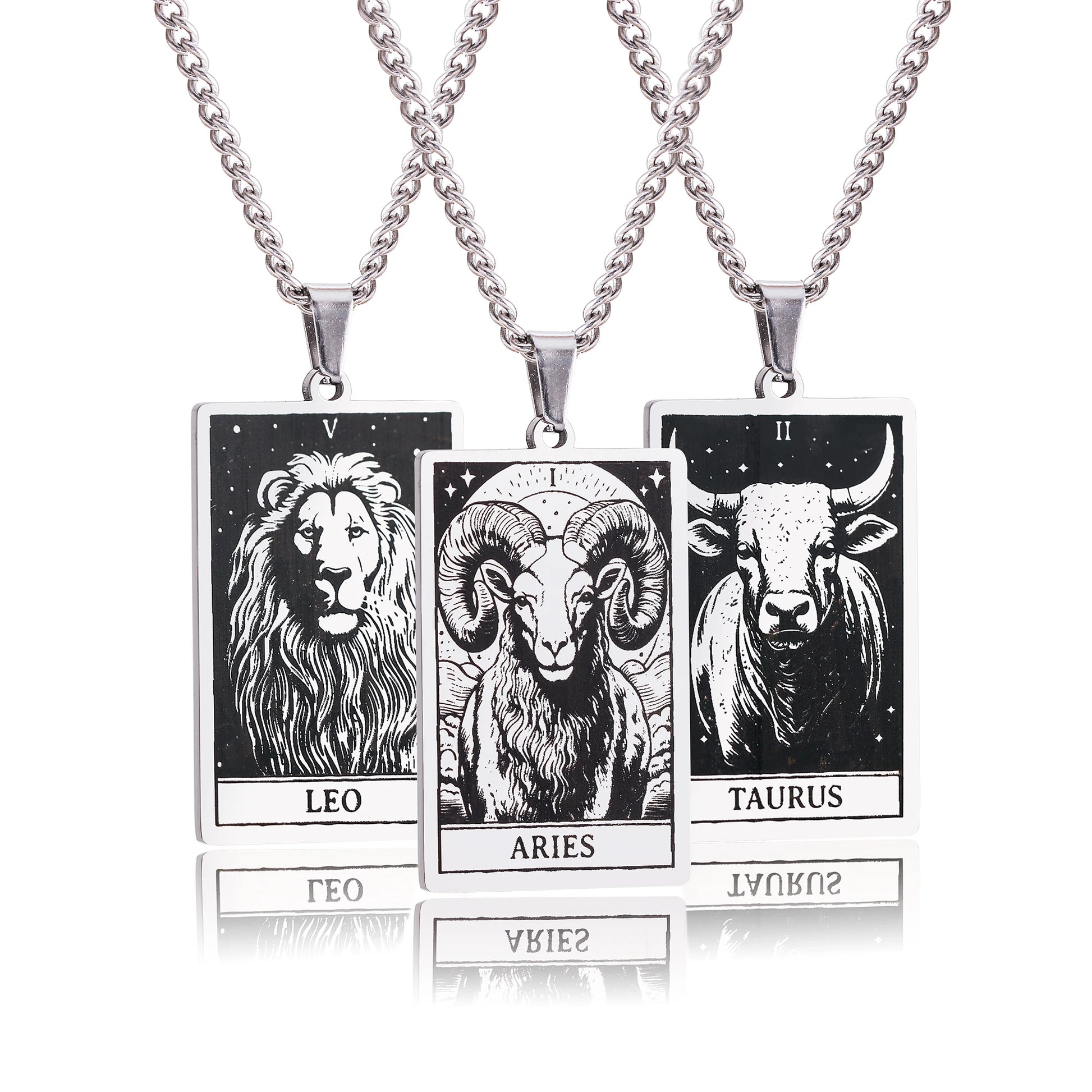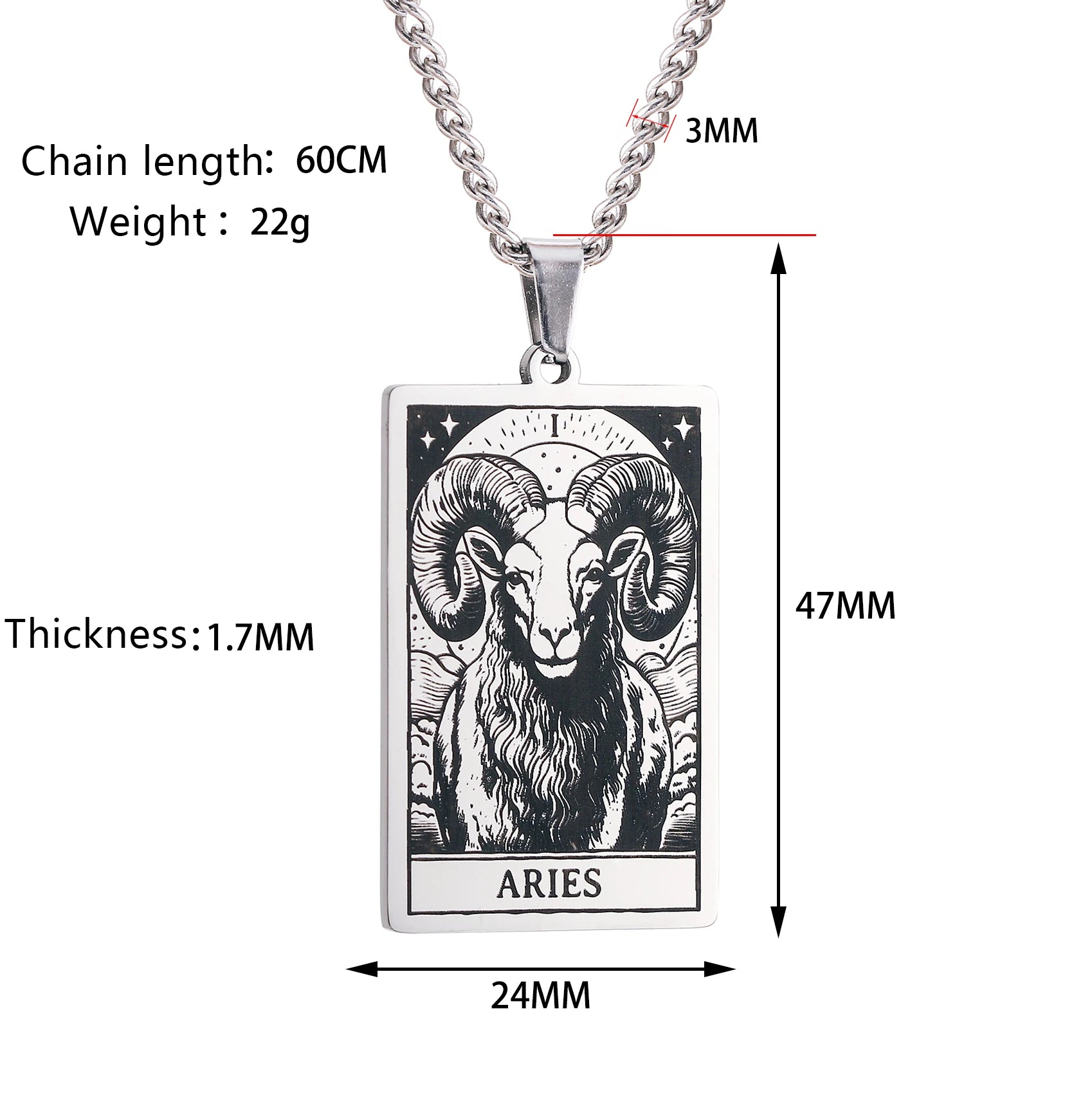Made from durable stainless steel, this 60cm necklace features a striking 47mm tall and 24mm wide zodiac sign pendant.