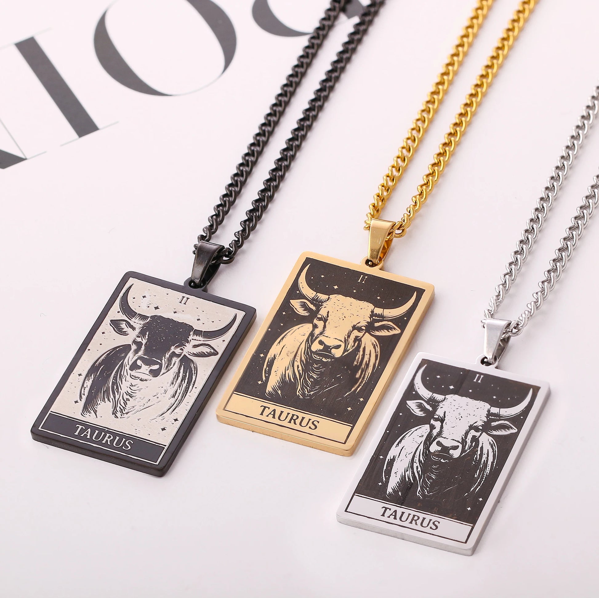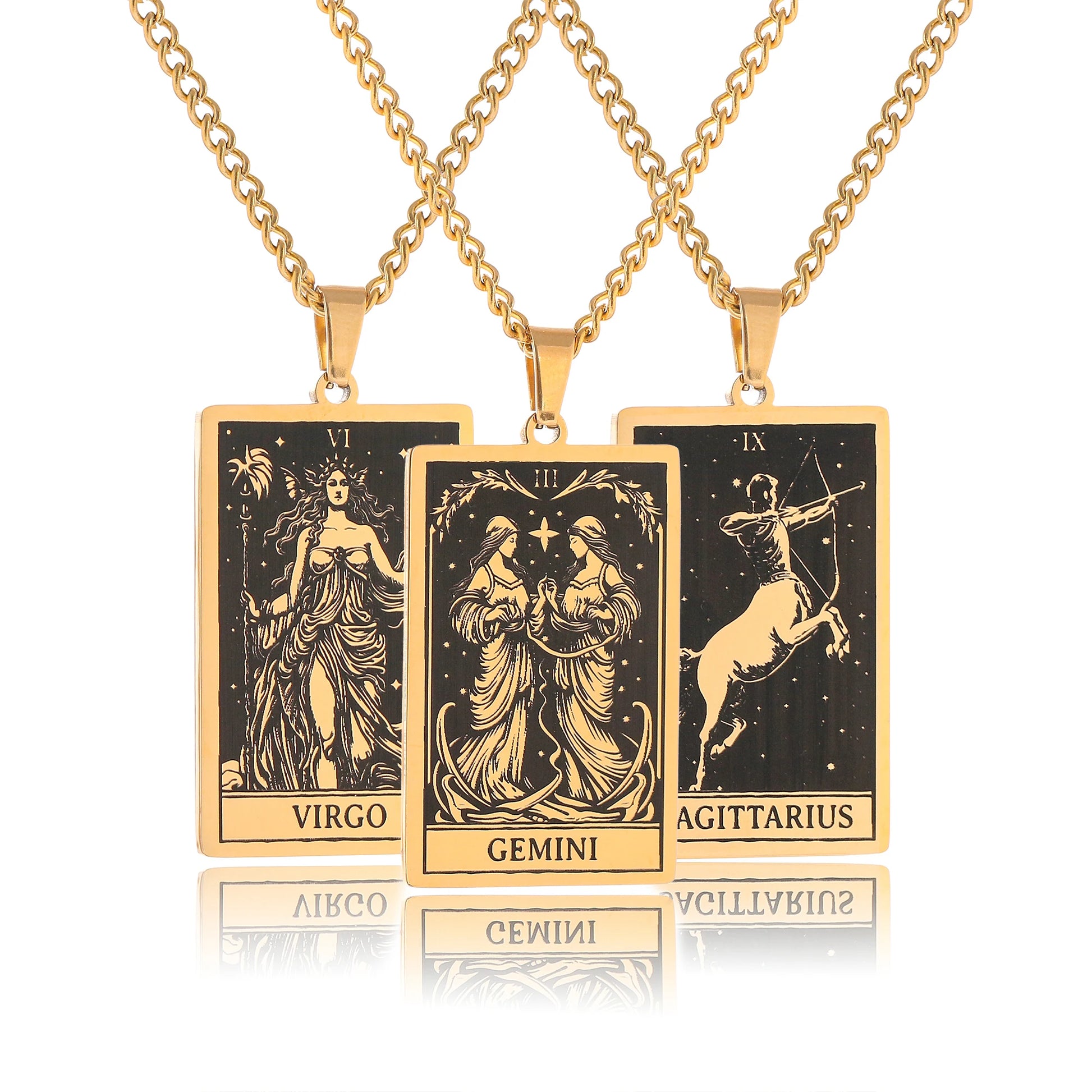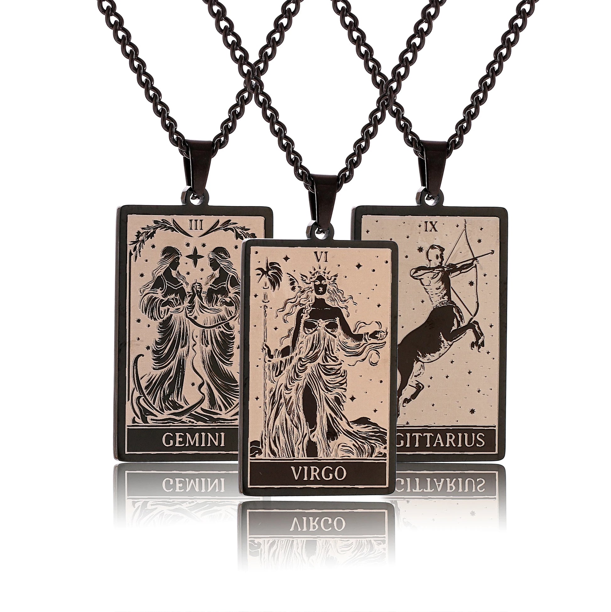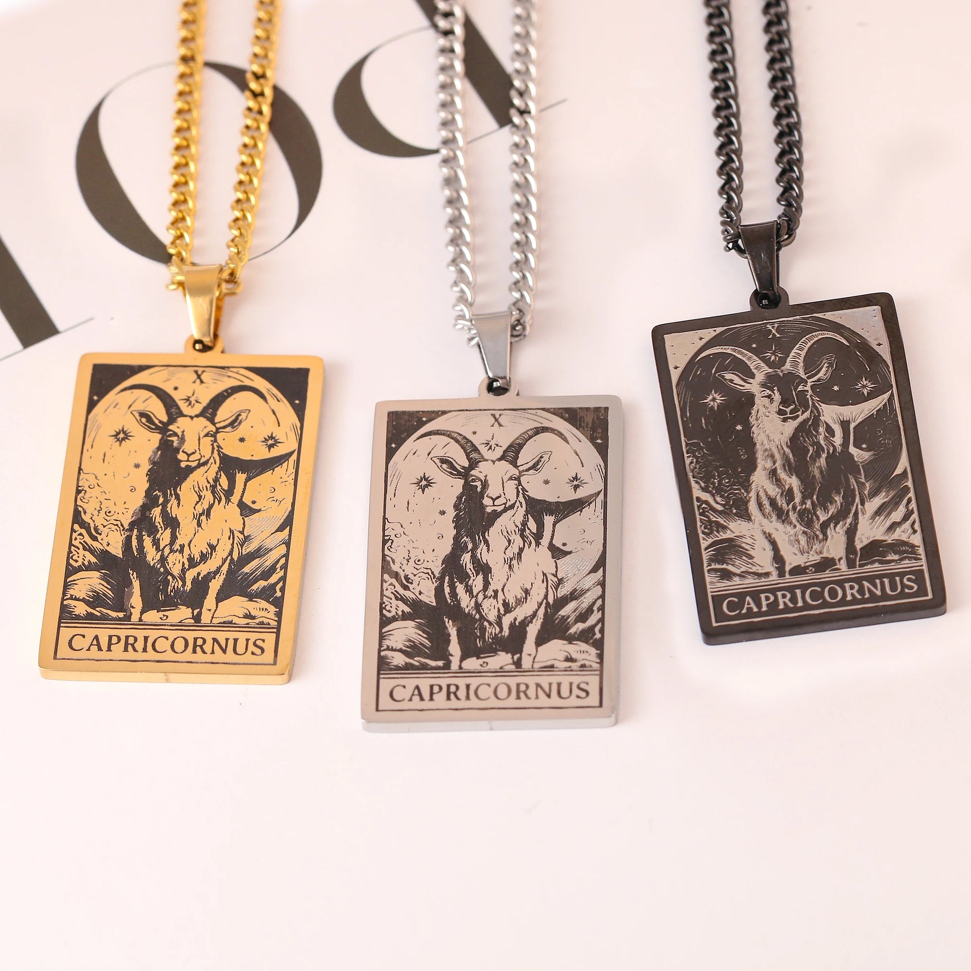 Made from durable stainless steel, this 60cm necklace features a striking 47mm tall and 24mm wide zodiac sign pendant.