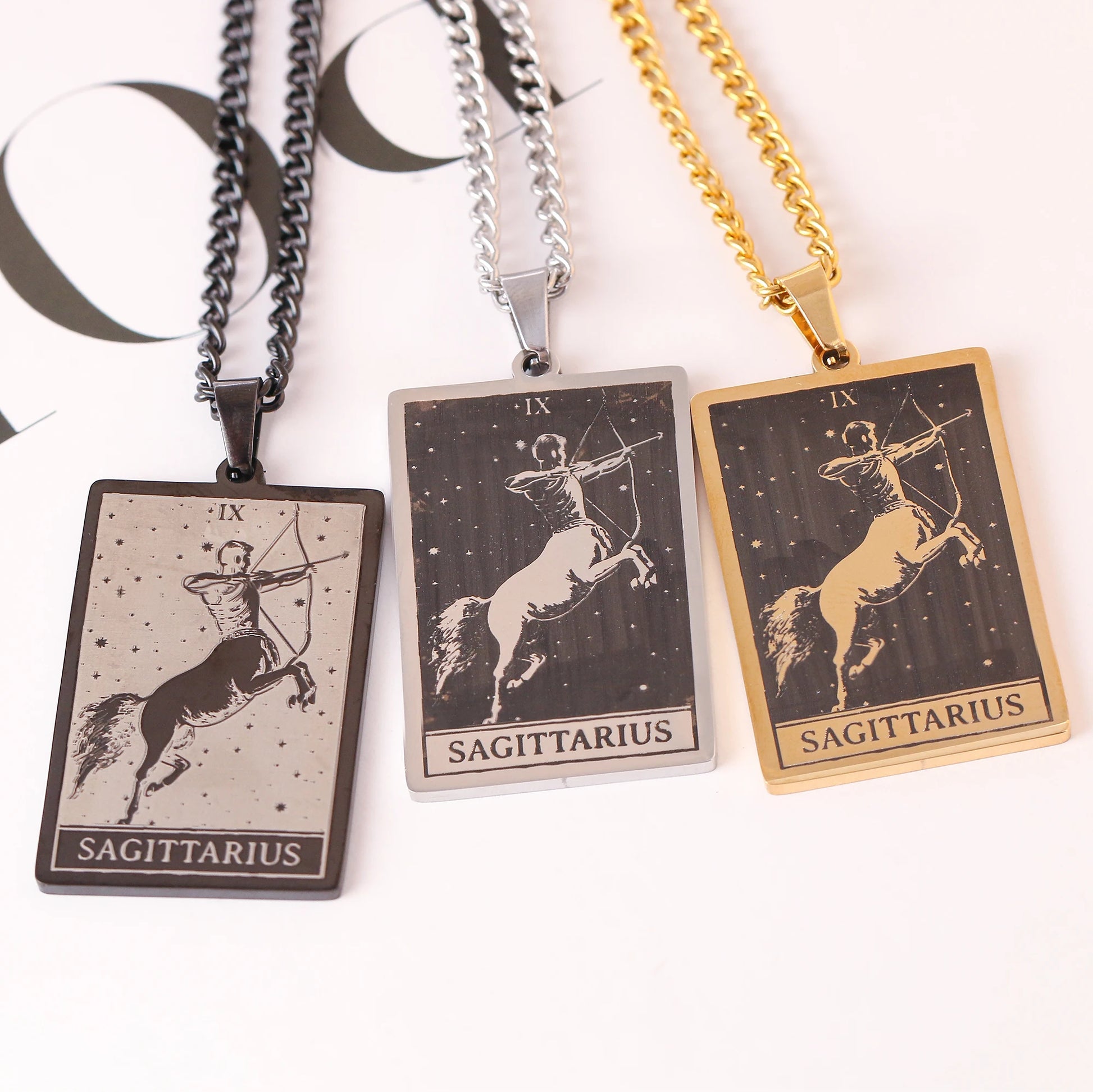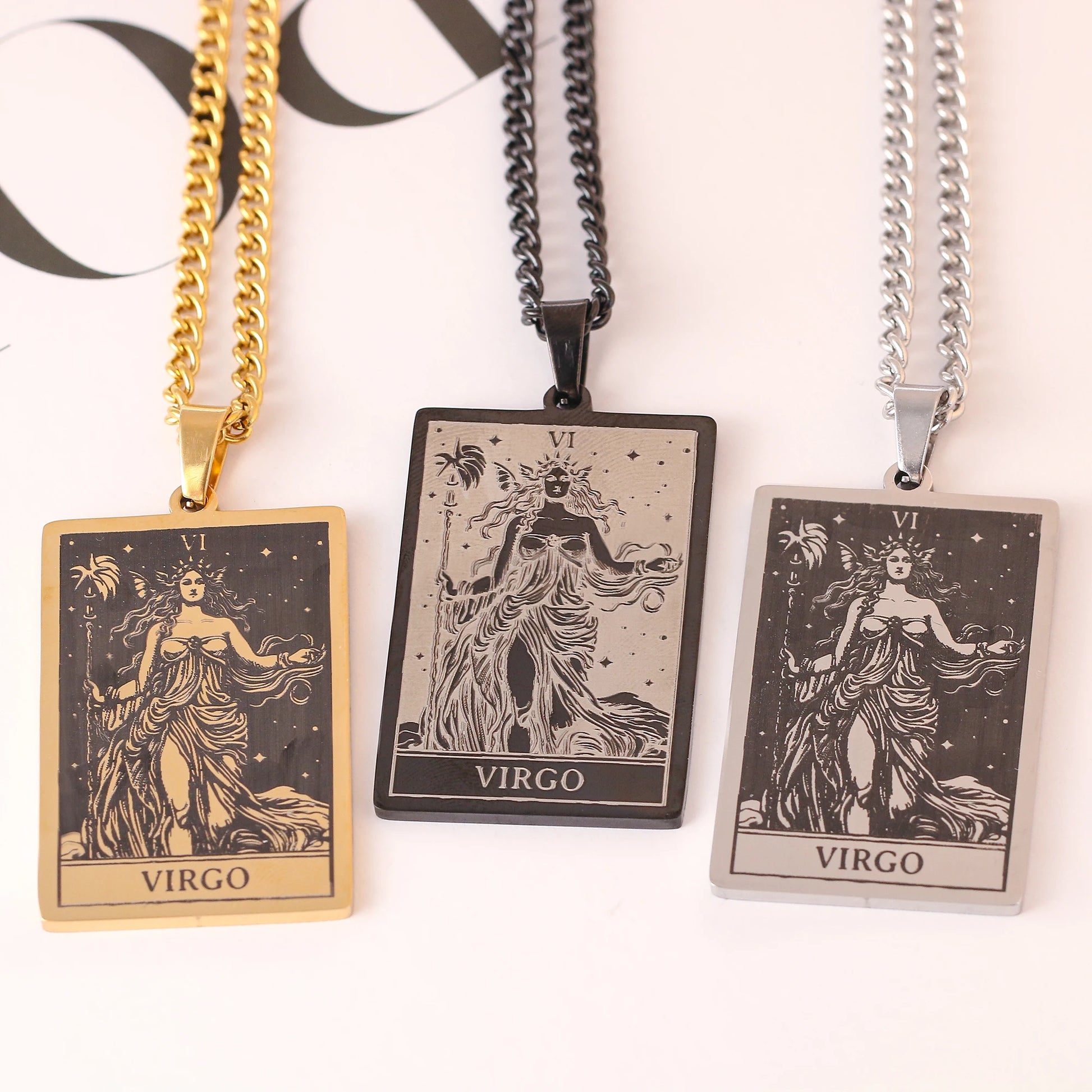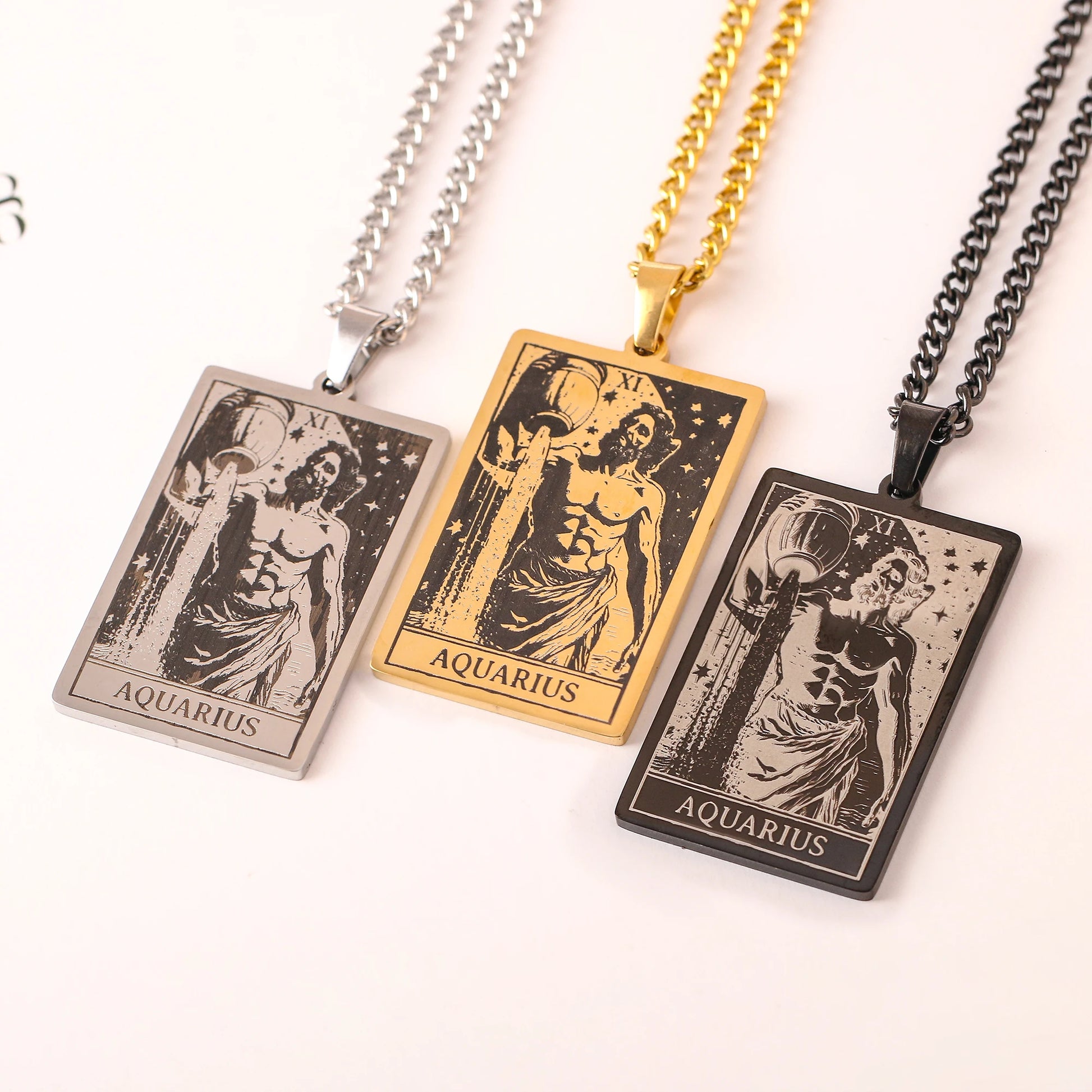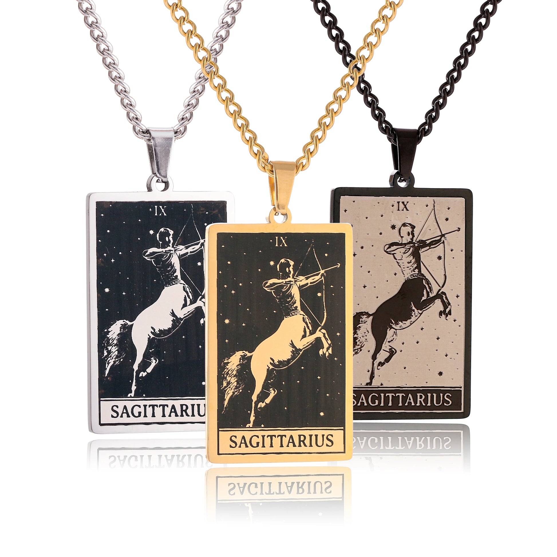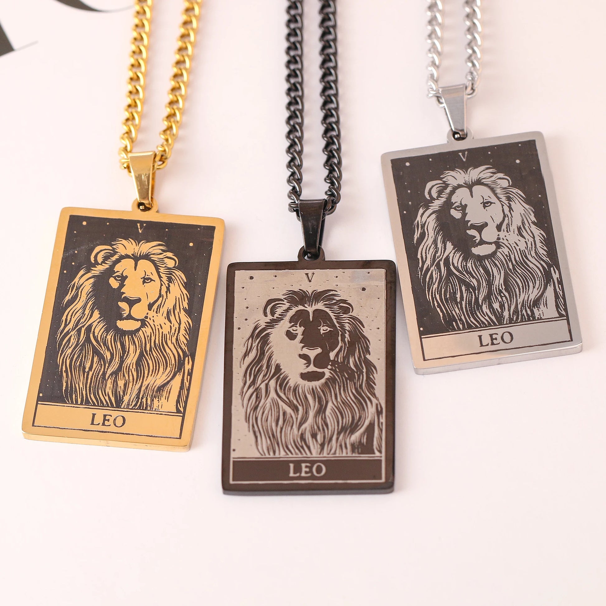 Made from durable stainless steel, this 60cm necklace features a striking 47mm tall and 24mm wide zodiac sign pendant.