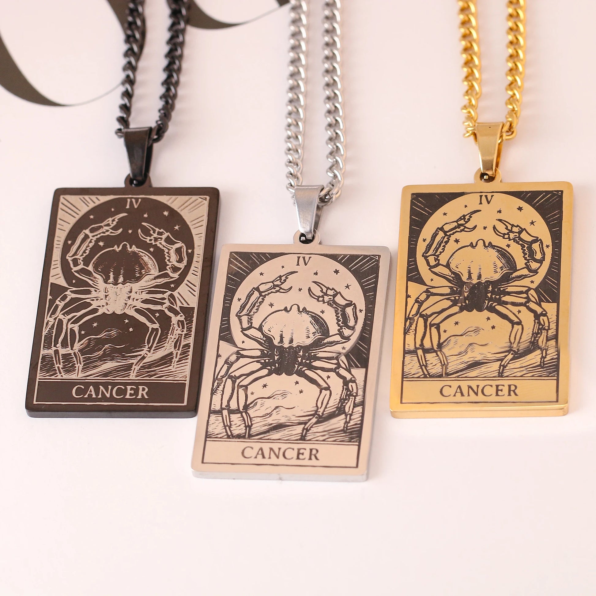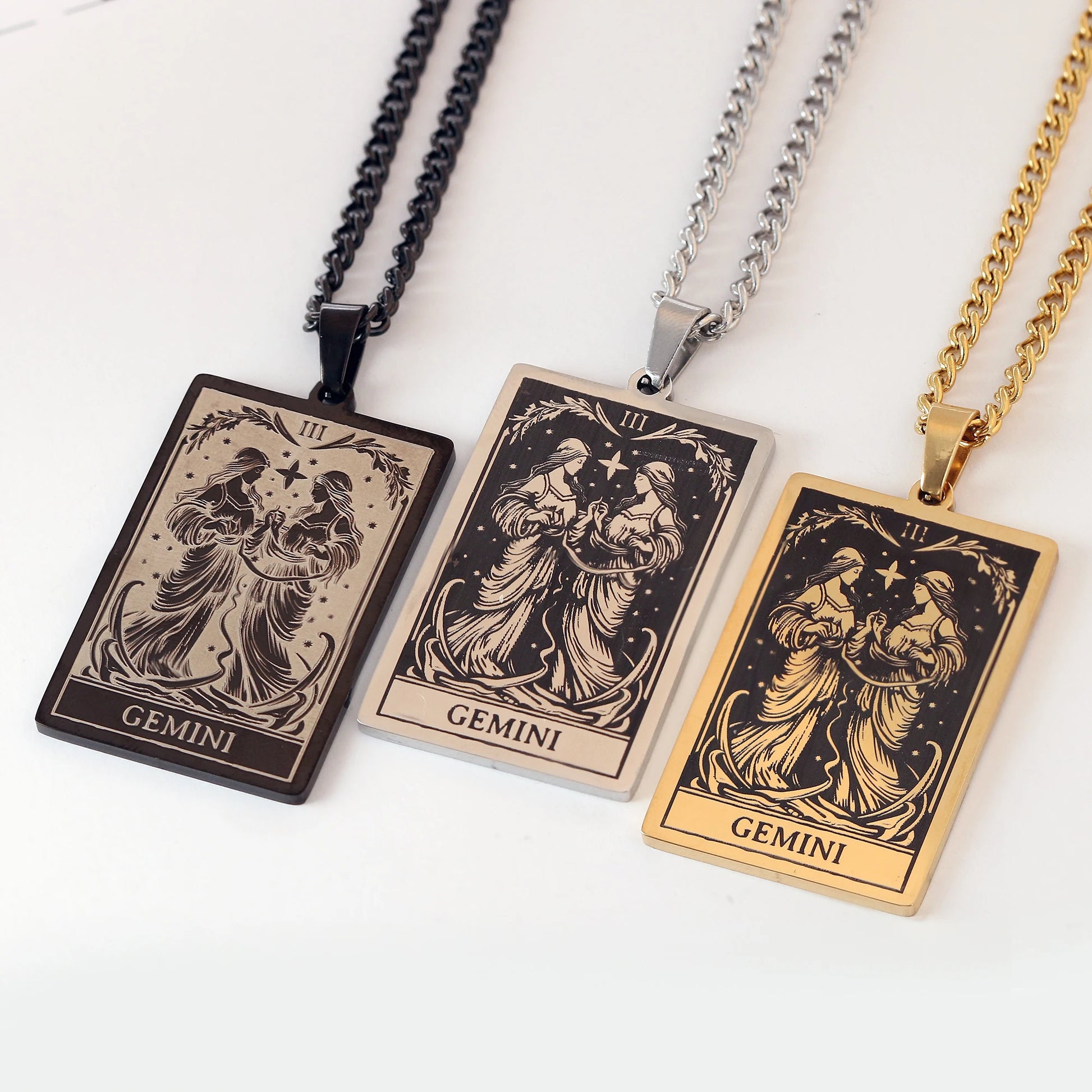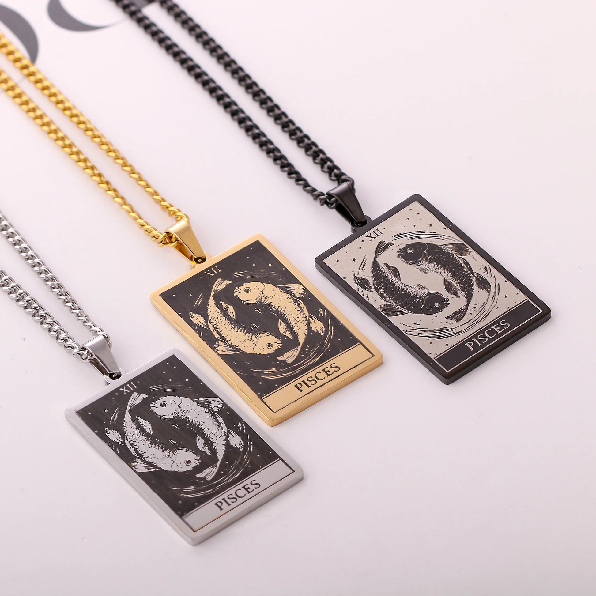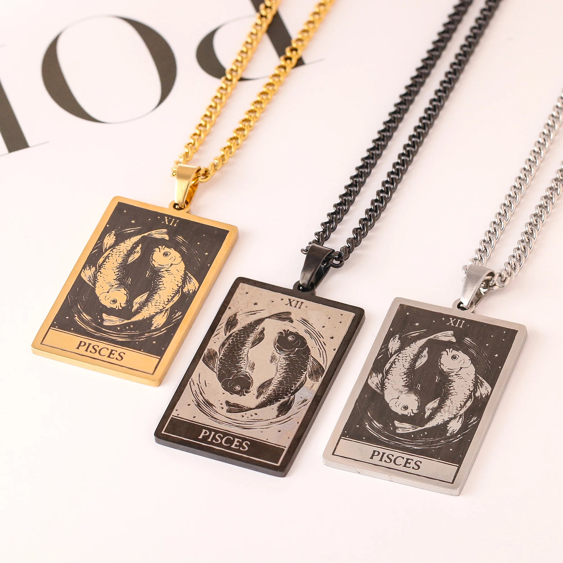 Made from durable stainless steel, this 60cm necklace features a striking 47mm tall and 24mm wide zodiac sign pendant.